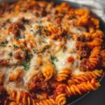 This Cheesy Pizza Pasta Bake combines rich marinara, browned beef, and gooey mozzarella for a comforting, one-dish meal that’s perfect for busy nights.